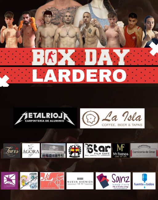 Los mejores boxeadores riojanos y de provincias limítrofes se darán cita en Lardero. Se podrá ver in situ dentro de las 13 peleas programadas a 4 peleadores locales algunos de ellos con varios campeonatos nacionales e internacionales a sus espaldas, ellos son Cristina Alesanco y Jorge “Lardero” del Team Marín y Aitana Ortigosa y Yerai Barruetabeña del Barru Boxing Club.