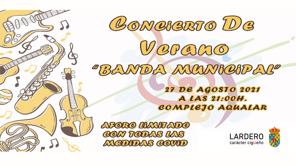 La Banda Municipal de Lardero ofrecerá un concierto gratuito el próximo viernes 27 de agosto, a las 21:00 h, en el complejo lúdico-acuático Aqualar.