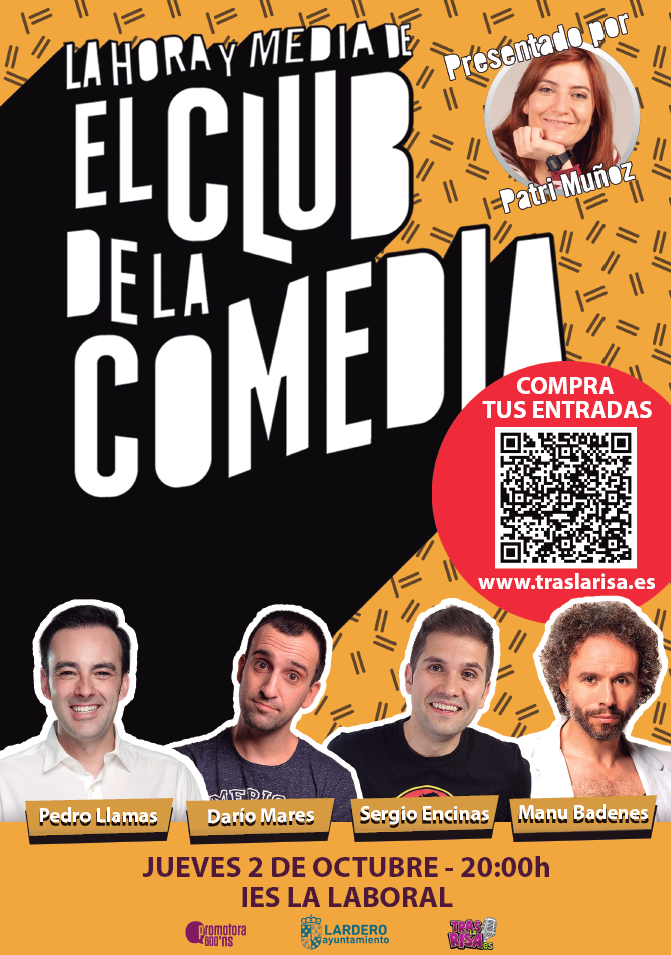 El próximo jueves 2 de octubre a las 20:00 horas, el escenario del IES La Laboral se llenará de humor con el espectáculo “La hora y media de El Club de la Comedia”, una cita imprescindible para los amantes de la comedia en directo.