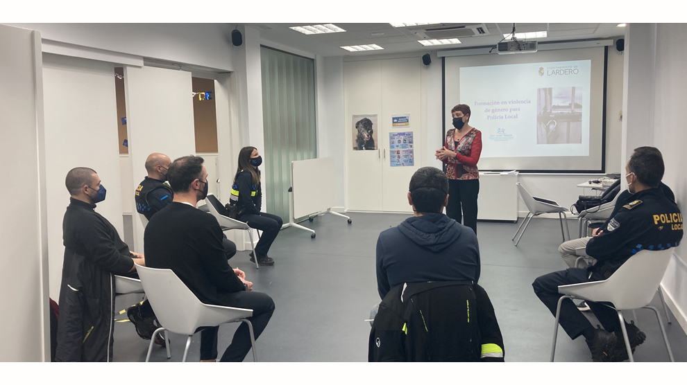 El equipo de policías locales de Lardero ha asistido este viernes 23 de abril a una jornada de formación para la intervención directa con mujeres víctimas de violencia de género y agresores. El curso completa otro que recibieron a finales de 2020, y en este caso han podido asistir también los últimos agentes incorporados a la Policía Local de Lardero el pasado enero. Esta sesión formativa es muy importante, ya que los agentes de la Policía Local son los primeros en acudir a las diferentes intervenciones en materia de violencia de género.