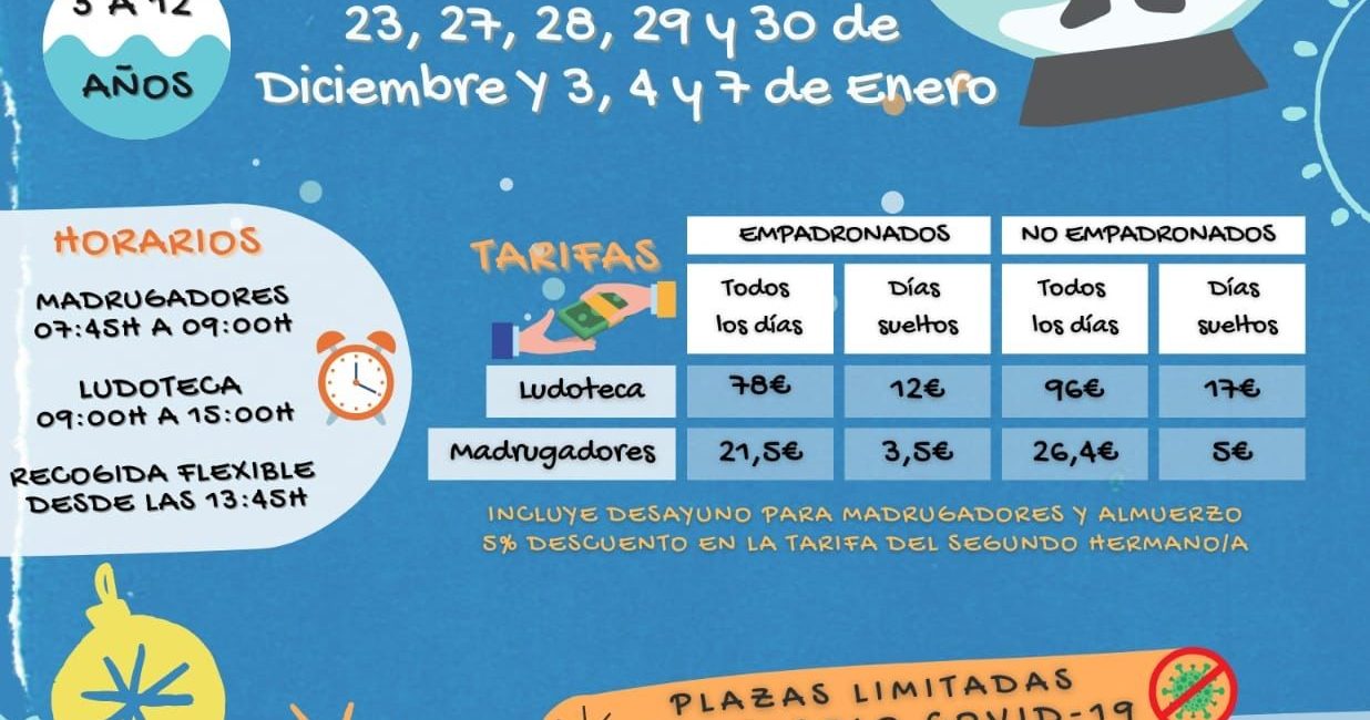 Los días 23,27,28, 29 y 30 de Diciembre y 3,4 y 7 de Enero tendrá lugar la Ludoteca de Navidad en el Centro Joven de Lardero.