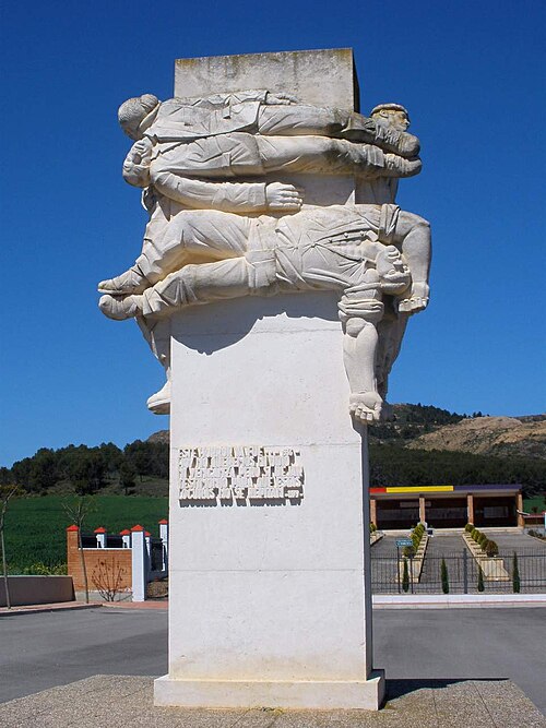La escultura que recibe a los visitantes forma parte del Memorial desde su inauguración. Es obra del escultor Alejandro Rubio Dalmati (Chillán, Chile, 1913 – Logroño, 2009) galardón a las Bellas Artes Riojanas del año 2000. Rubio Dalmati, que fue detenido y estuvo en la cárcel de Logroño durante los primeros meses de la sublevación, supo expresar con esta obra la crueldad y el dolor de aquellos hechos, convirtiéndola, al mismo tiempo, en un impresionante grito contra la sinrazón.
