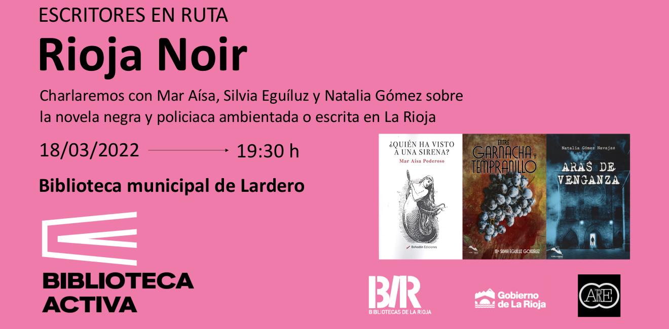 El próximo 18 de marzo a las 19:30 h. celebraremos en la biblioteca municipal de Lardero la segunda sesión del ciclo Escritores en ruta: ciclo ambulante de encuentros literarios en La Rioja y contaremos con la presencia de tres autoras riojanas, Mar Aísa, Silvia Eguíluz y Natalia Gómez, con las que hablaremos sobre la novela negra y policiaca ambientada o escrita en La Rioja.