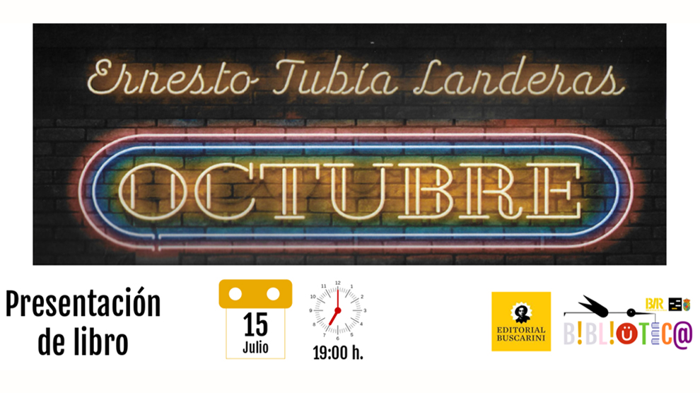 El próximo jueves 15 de julio, la Biblioteca Municipal de Lardero organiza la presentación de ‘Octubre‘ (Editorial Buscarini) la nueva novela del escritor riojano, ganador de numerosos premios literarios a nivel nacional, Ernesto Tubía Landeras.