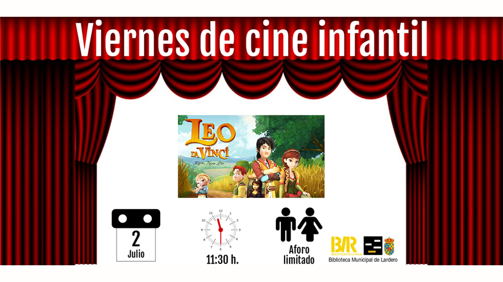La Casa de Cultura de Lardero organiza una nueva edición de los “Viernes de Cine Infantil”, que cada quince días, durante los meses de julio y agosto, ofrecerá una película para los más pequeños. La actividad comienza el próximo 2 de julio, a las 11:30 h, con la película Leo Da Vinci: Misión Mona Lisa. La actividad tendrá aforo limitado y para reservar un sitio debe rellenarse el siguiente formulario.